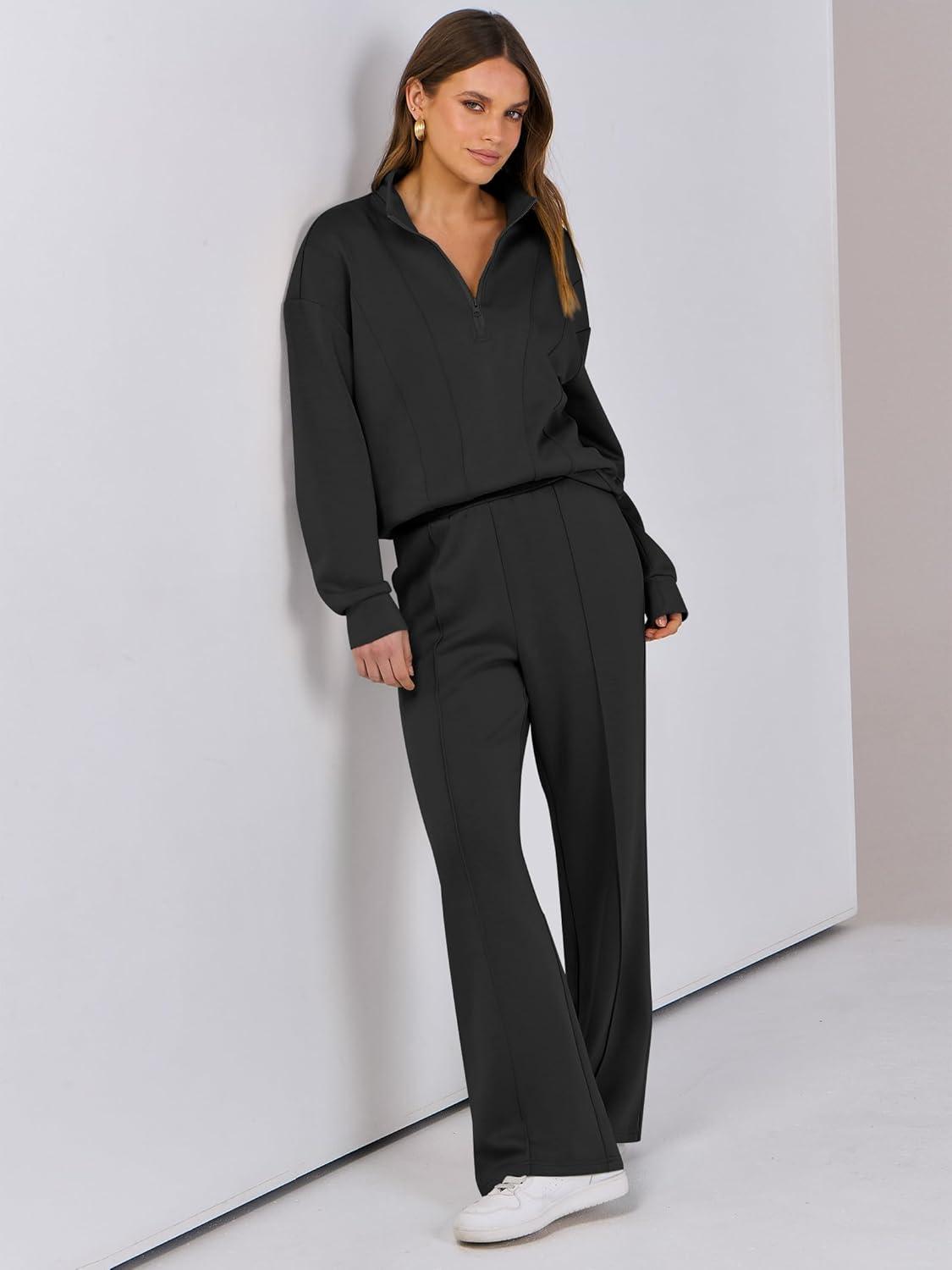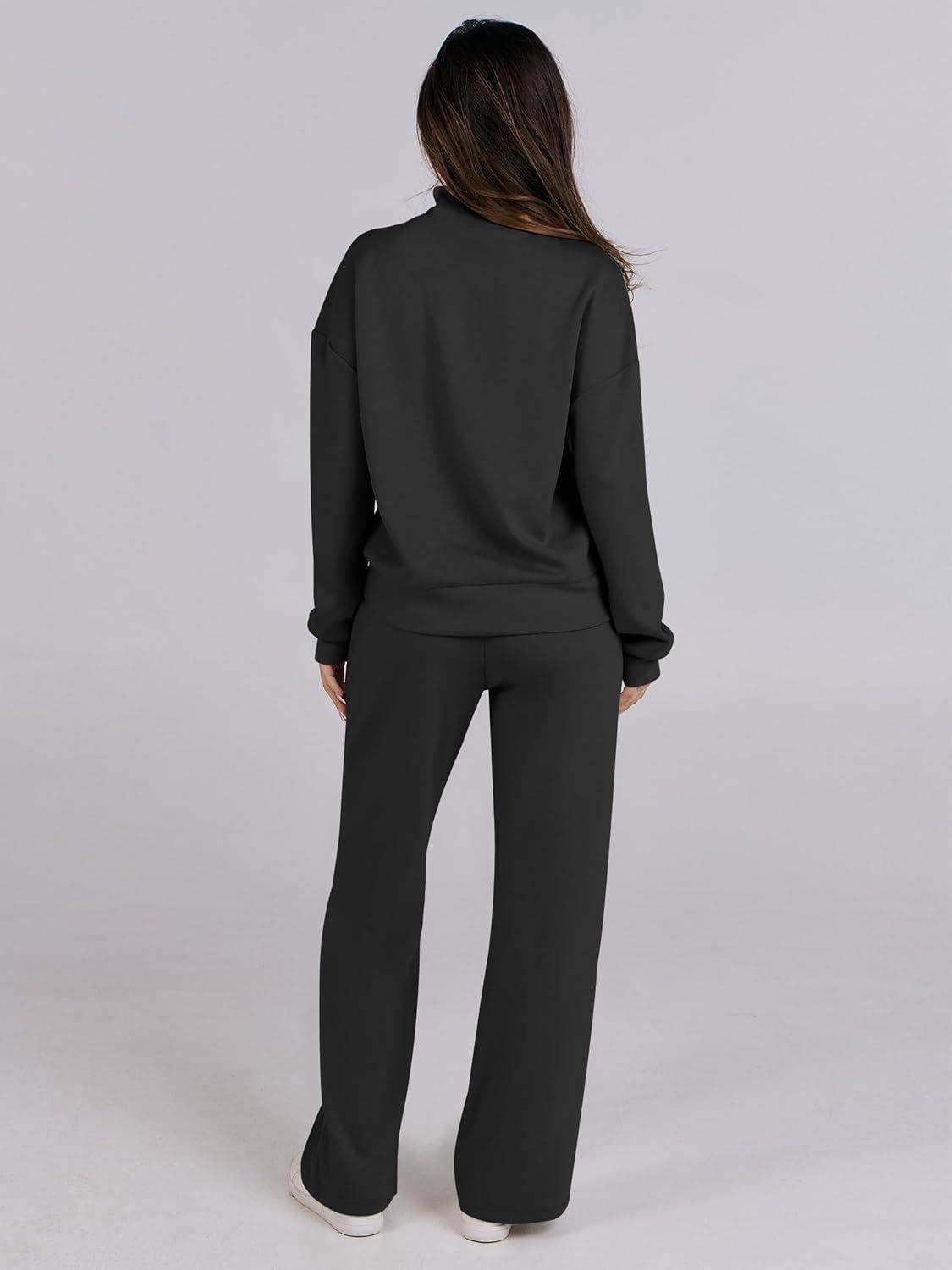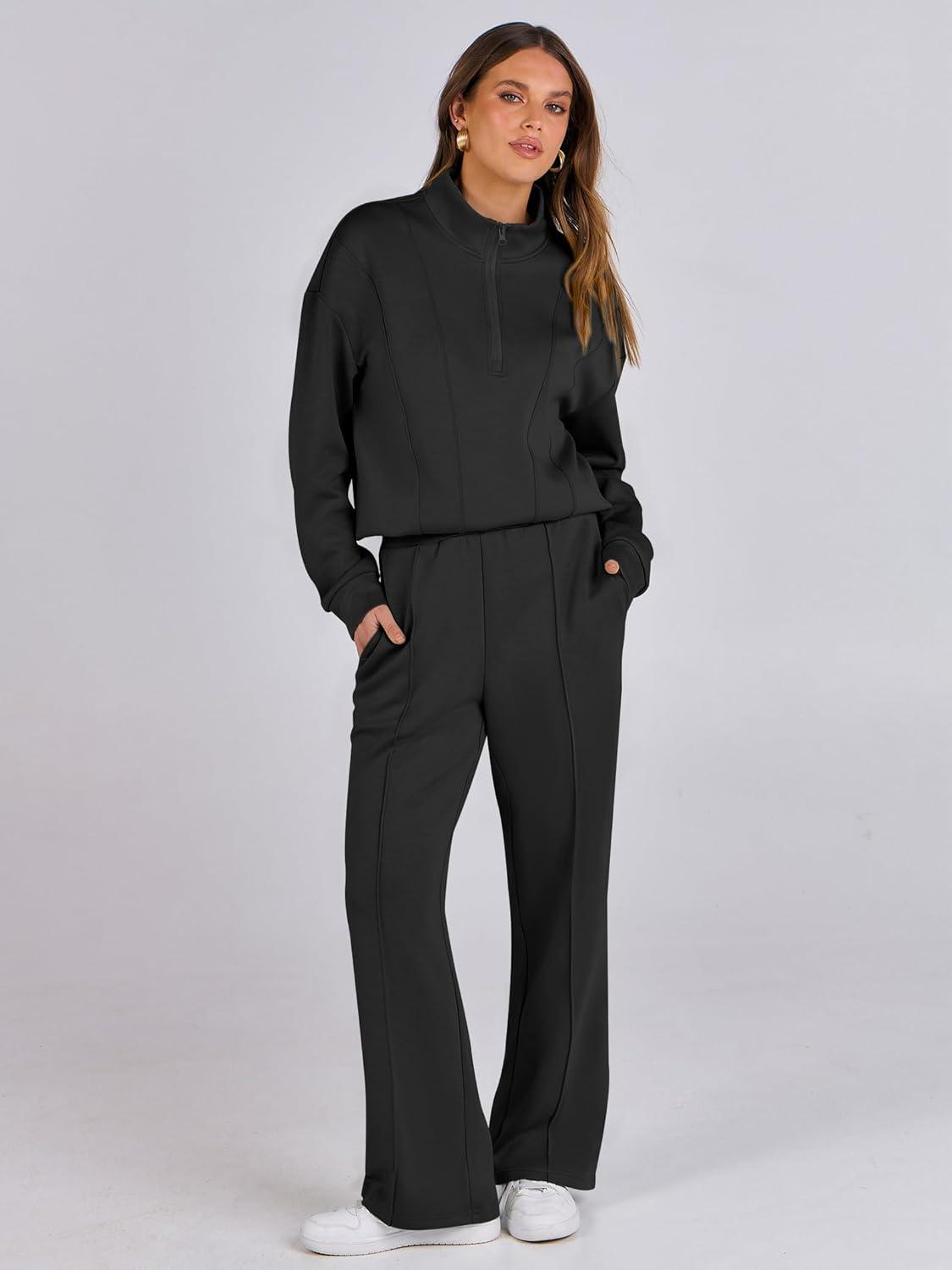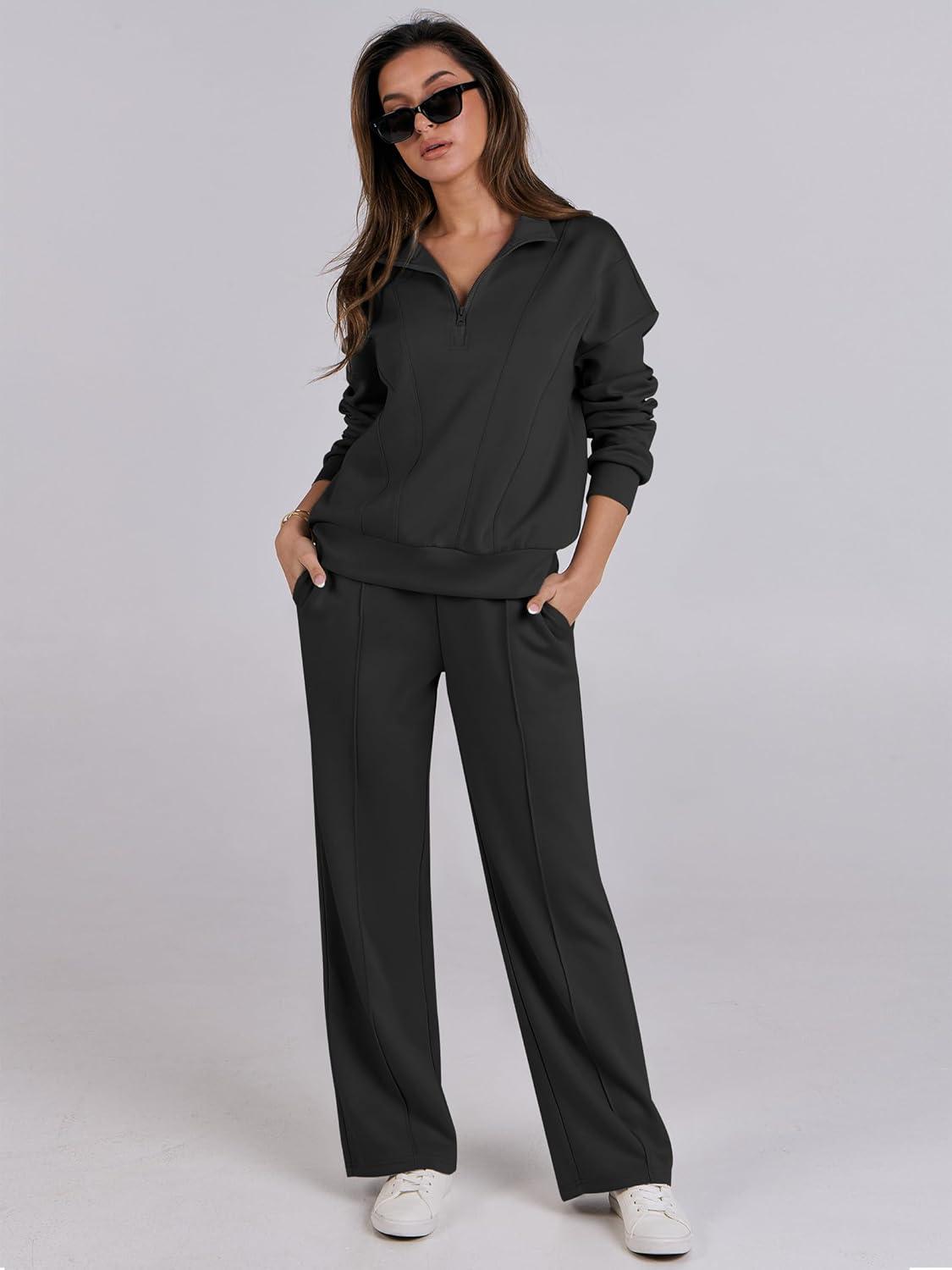 Caracilia 2 Piece Outfits for Women Fall Sweatsuits Oversized Half Zip Sweatshirt Sweatpant Matching Lounge Sets Tracksuit(Black)