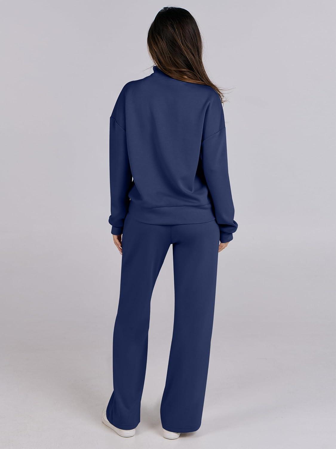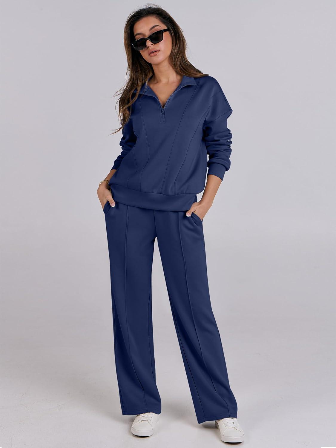 Caracilia 2 Piece Outfits for Women Fall Sweatsuits Oversized Half Zip Sweatshirt Sweatpant Matching Lounge Sets Tracksuit(Navy Blue)