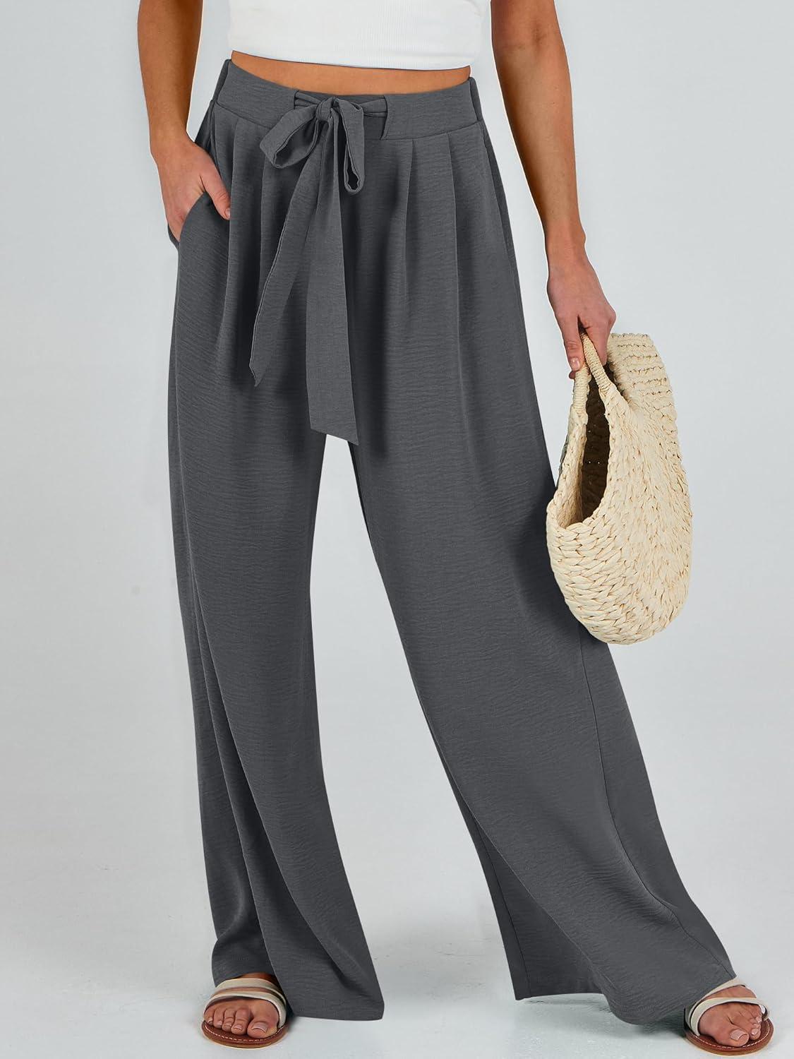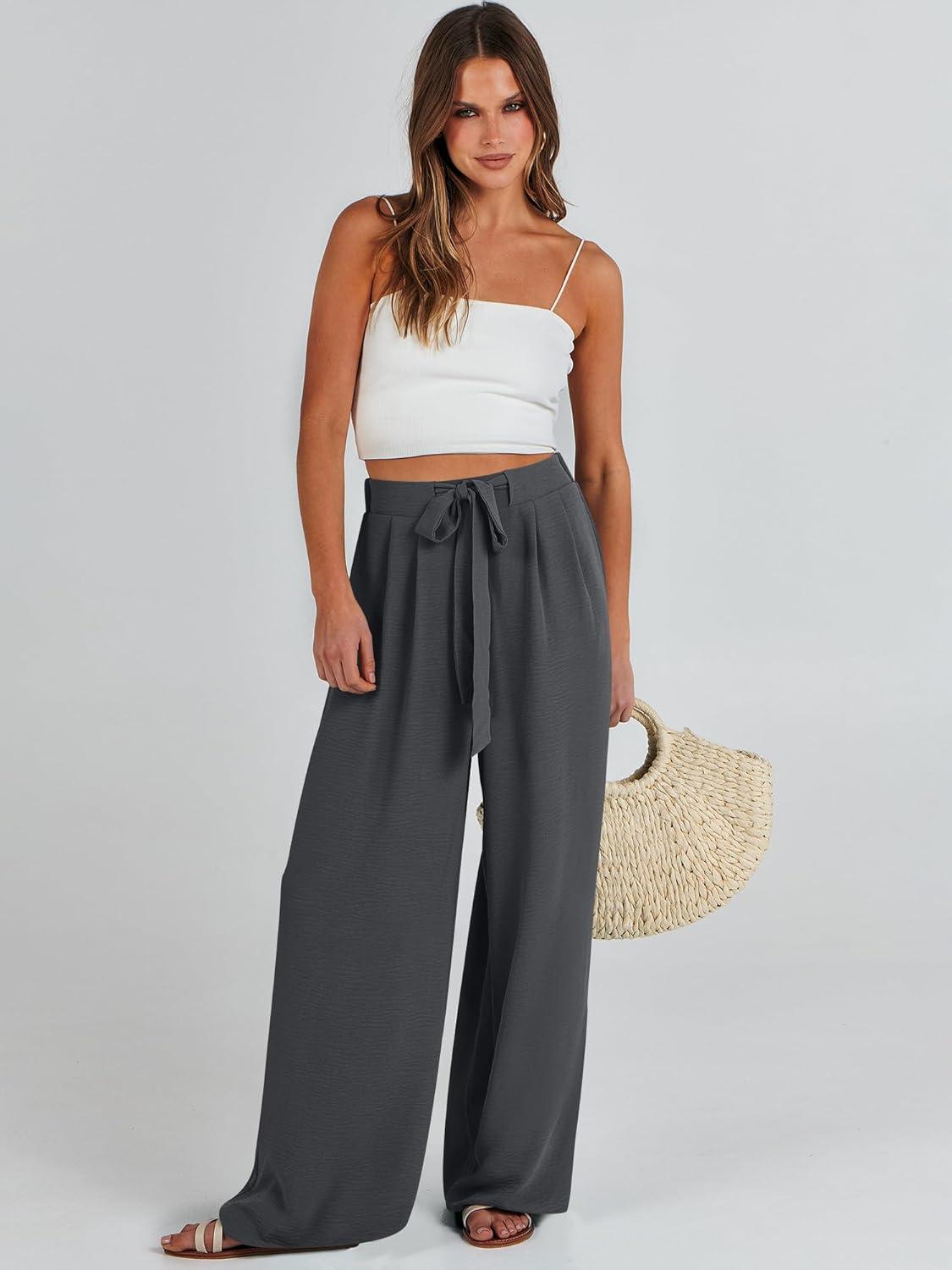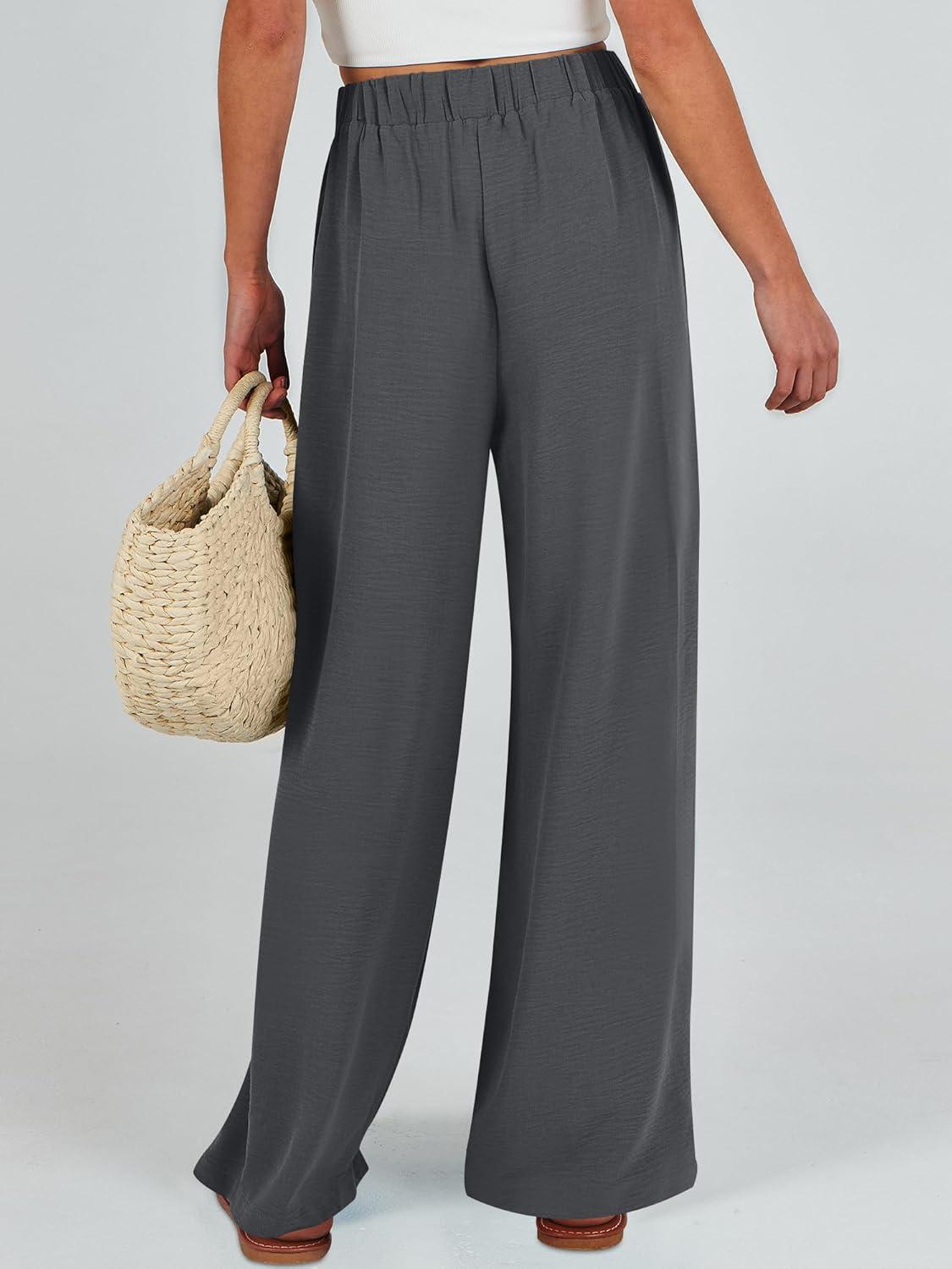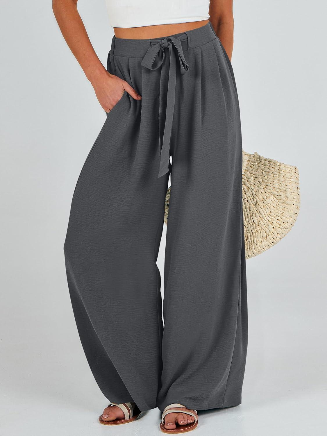 Caracilia Women Wide Leg Palazzo Pants Summer High Waist Flowy Casual Trousers Loose Lounge Beach Travel Vacation Clothes(Dark Gray)
