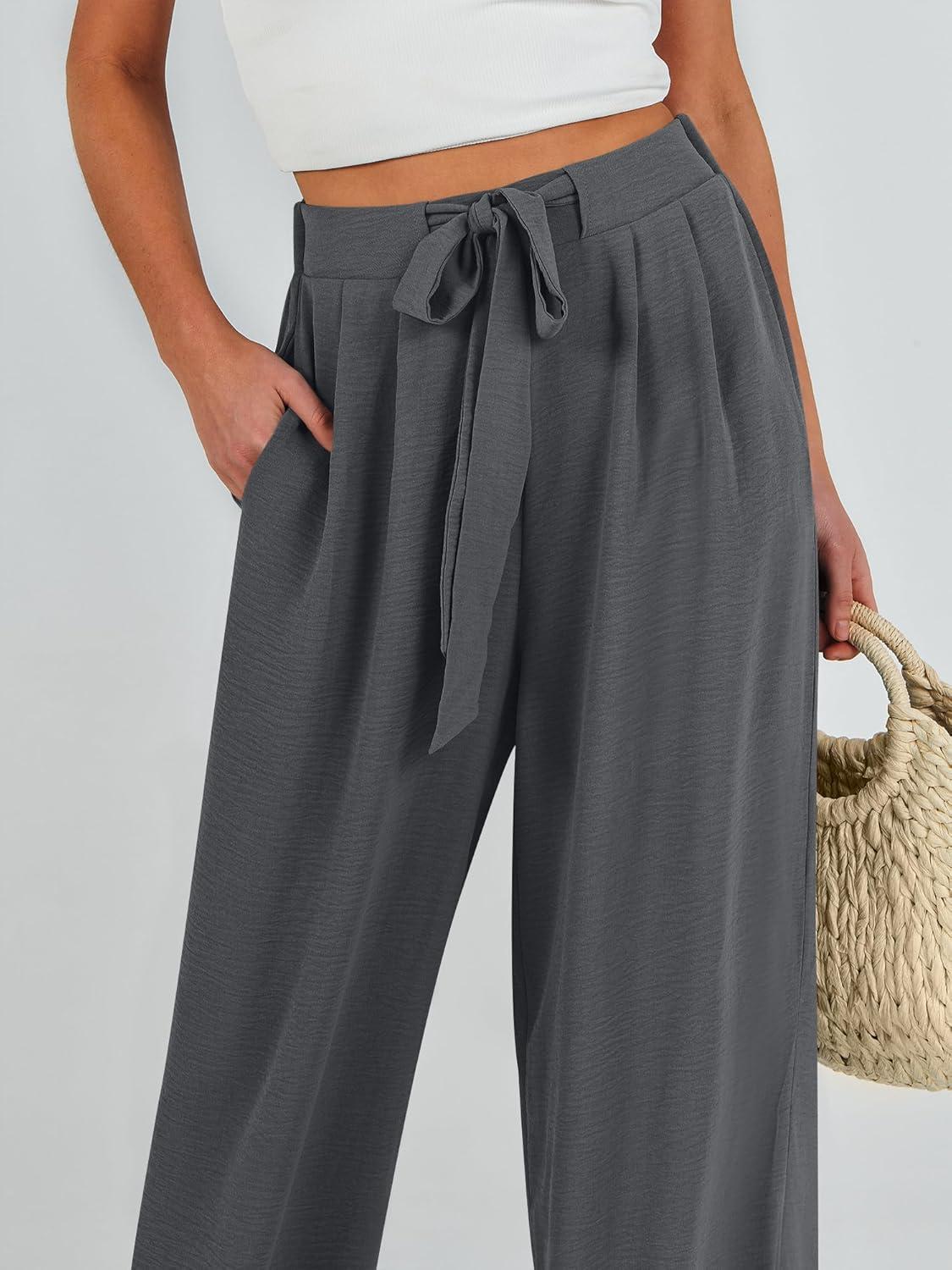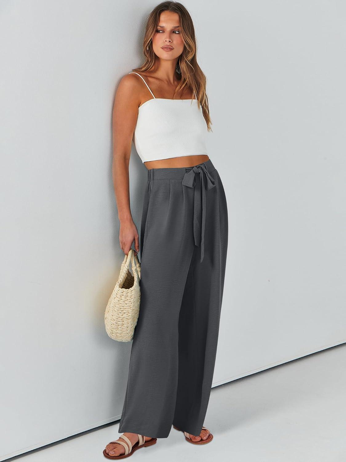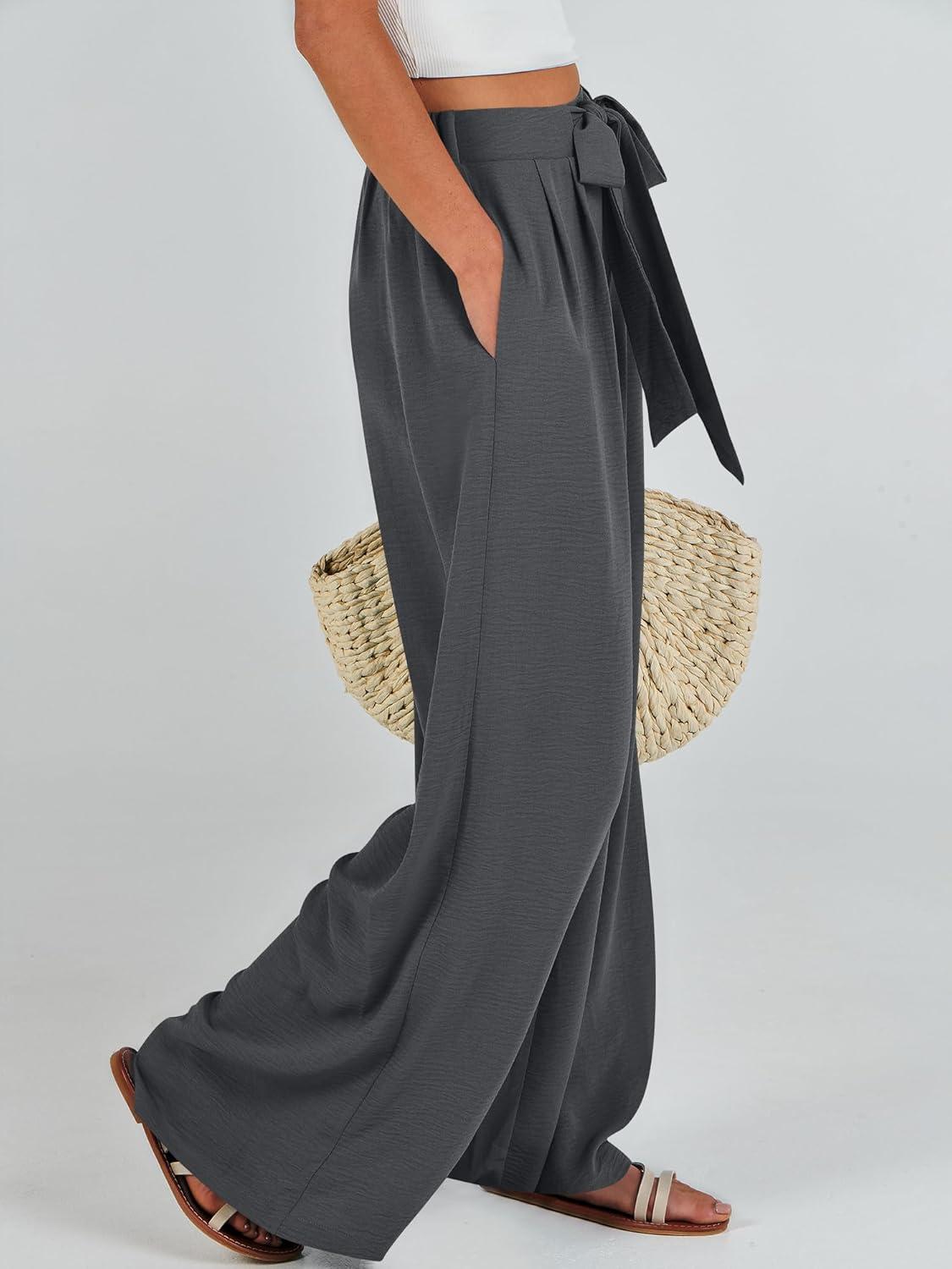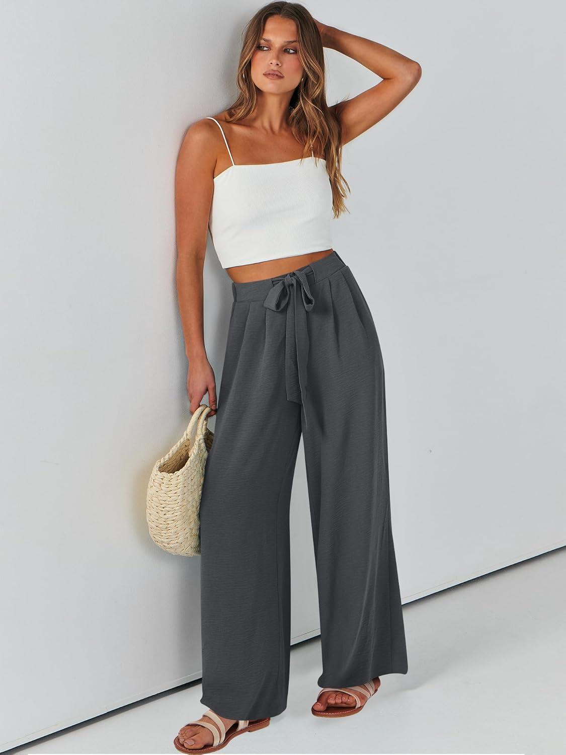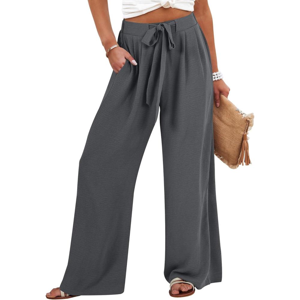 Caracilia Women Wide Leg Palazzo Pants Summer High Waist Flowy Casual Trousers Loose Lounge Beach Travel Vacation Clothes(Dark Gray)