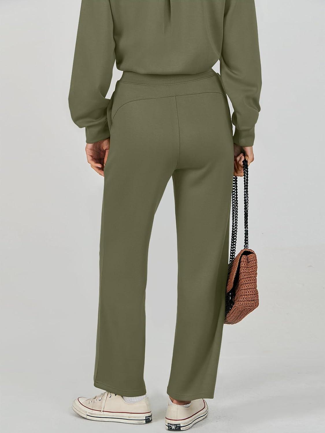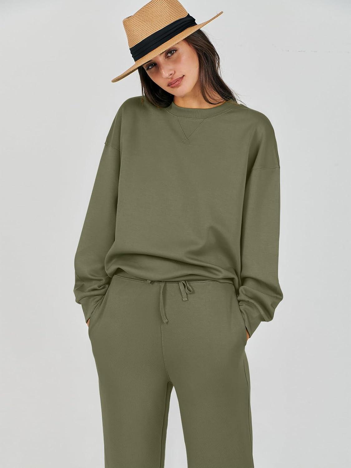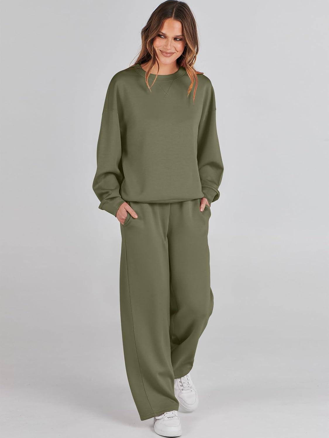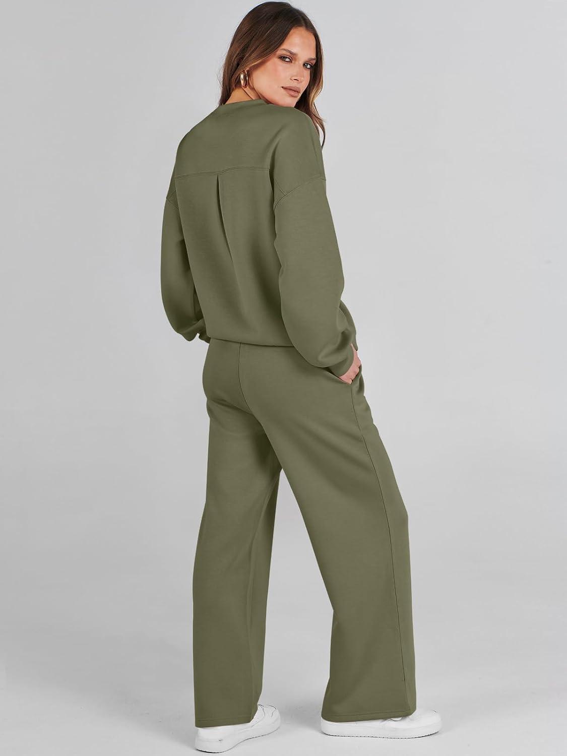 Caracilia Women’s 2 Piece Outfits Sweatsuit Fall Crewneck Sweatshirts Wide Leg Pants Lounge Matching Sweat Sets Tracksuit(Grey Green)