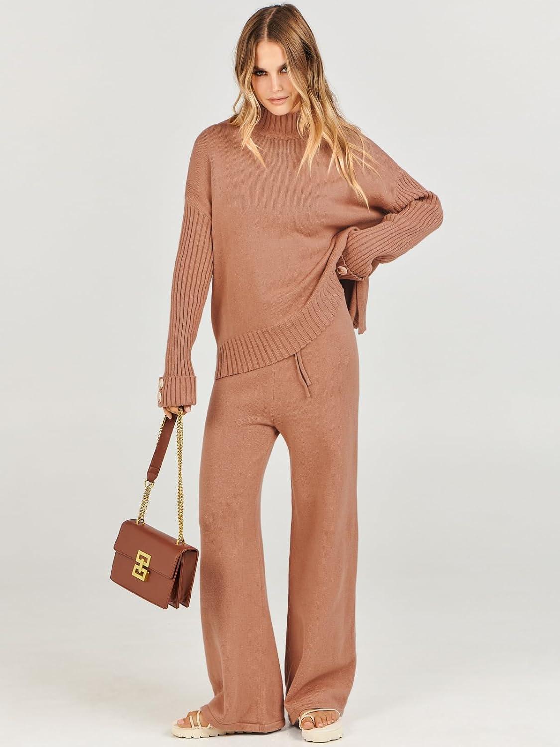 Be the first to review “Caracilia Womens 2 Piece Sweater Set Knit Pullover Wide Leg Pants Lounge Matching Sets 2024 Fall Fashion Travel Outfits(Rust)”